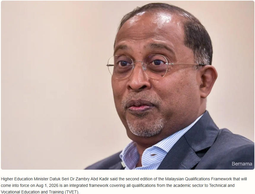 The second edition of the Malaysian Qualifications Framework (MQF 2.0), an enhanced national system for standardising academic and vocational qualifications, will come into force on Aug 1, 2026. Higher Education Minister Datuk Seri Dr Zambry Abd Kadir said MQF 2.0 is an integrated framework covering all qualifications from the academic sector to Technical and Vocational Education and Training (TVET). He added that the updated framework emphasises learning outcomes, a transparent credit system and the integration of sustainability values and national competencies, aimed at producing holistic and responsible graduates. “This is a proud achievement that reflects the growing internationalisation of Malaysia’s higher education sector,” he said at the Malaysian Qualifications Agency (MQA) Awards 2025 ceremony on Monday night, which was also attended by Deputy Prime Minister Datuk Seri Dr Ahmad Zahid Hamidi. Zambry noted that the inaugural awards ceremony was organised to recognise excellence in quality across the country’s higher education ecosystem. Universiti Tenaga Nasional received the Grand Award under the Quality Assurance Grand Award category, taking home a trophy and certificate. The MQA Awards 2025 covered all higher education sectors, including public and private universities, polytechnics, community colleges, private colleges and public training institutes, in line with the Malaysian Higher Education Strategic Plan (PPTM) 2025–2035. |